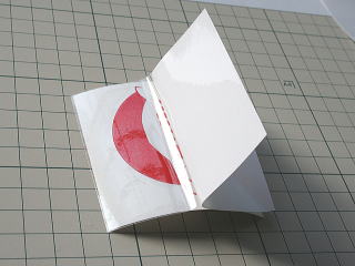 ![]() ステップ 9 台紙から剥して、ロゴのシートの上から貼り付けます。 |
